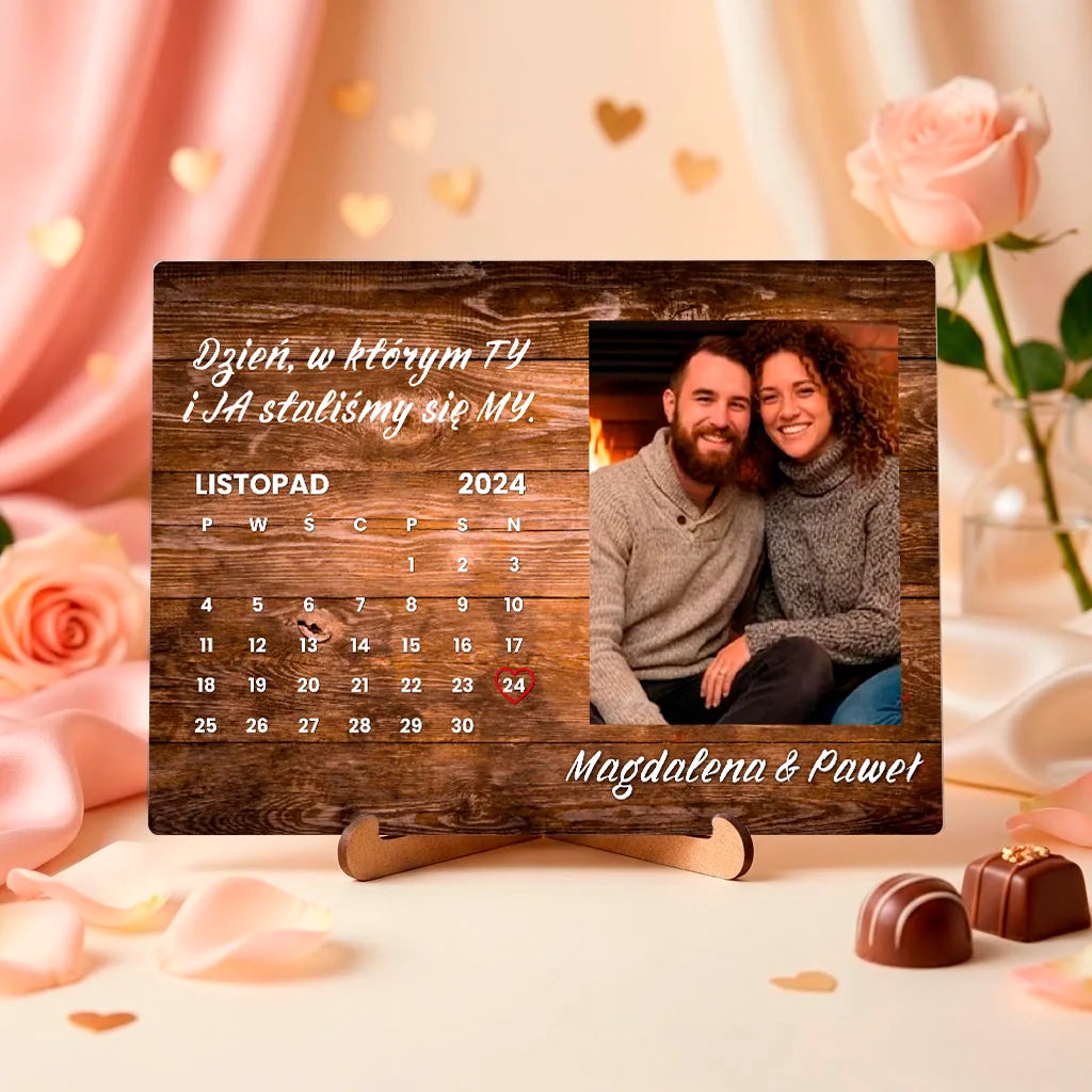 Personalizowana dekoracja stołowa z fotografią, tekstem i datą