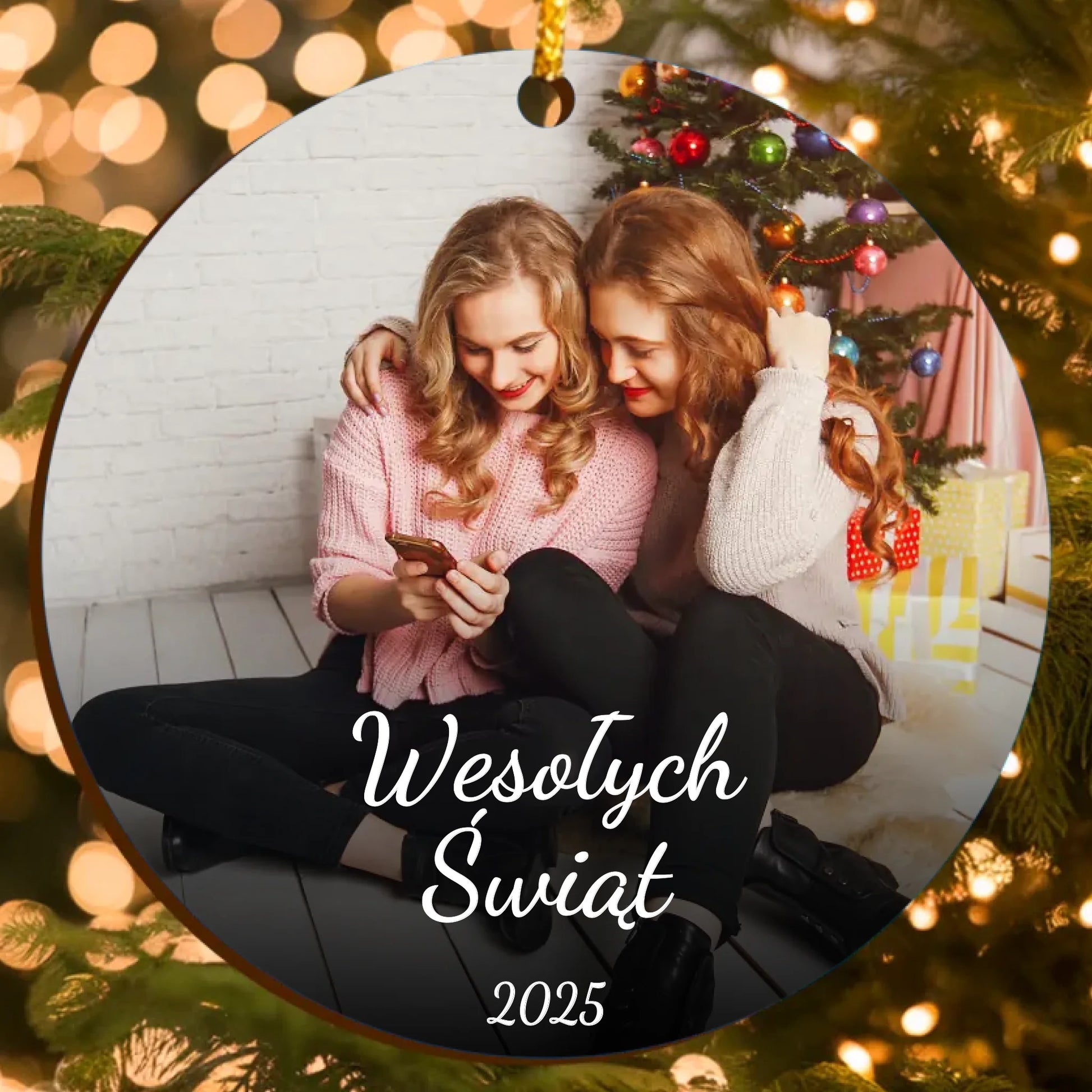 Personalizowana ozdoba świąteczna ze zdjęciem – własny tekst i rok